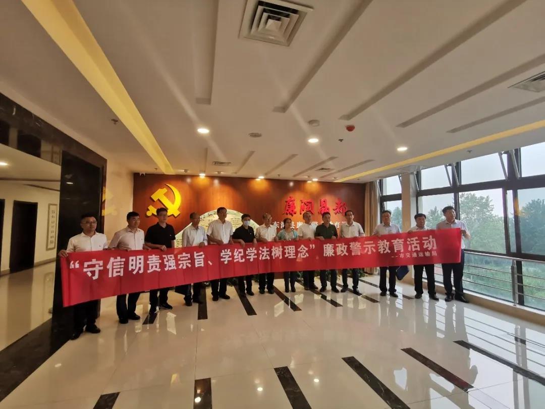 7月14日下午,连云港市交通运输局党委委员、副局长蔡辉一行40余人赴我县“廉润晶都”廉洁警示教育基地、省级廉政文化示范点“自清苑”,开展廉政警示教育活动。县交通运输局局长李宝福,县纪委常委陈义凤陪同。