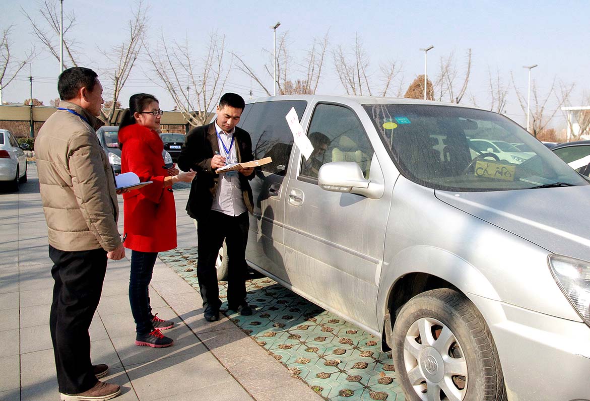 督察组对一单位公车封存情况进行检查。