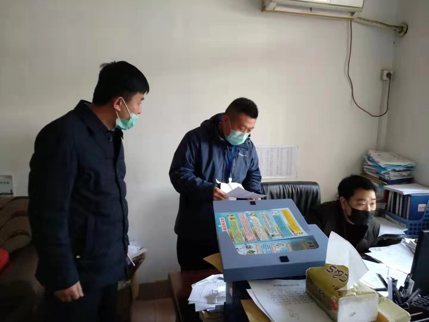 ▲ 督查组在县交通局开展疫情防控督查工作,图为了解该局近期防疫工作宣传、人员在岗在位等情况。