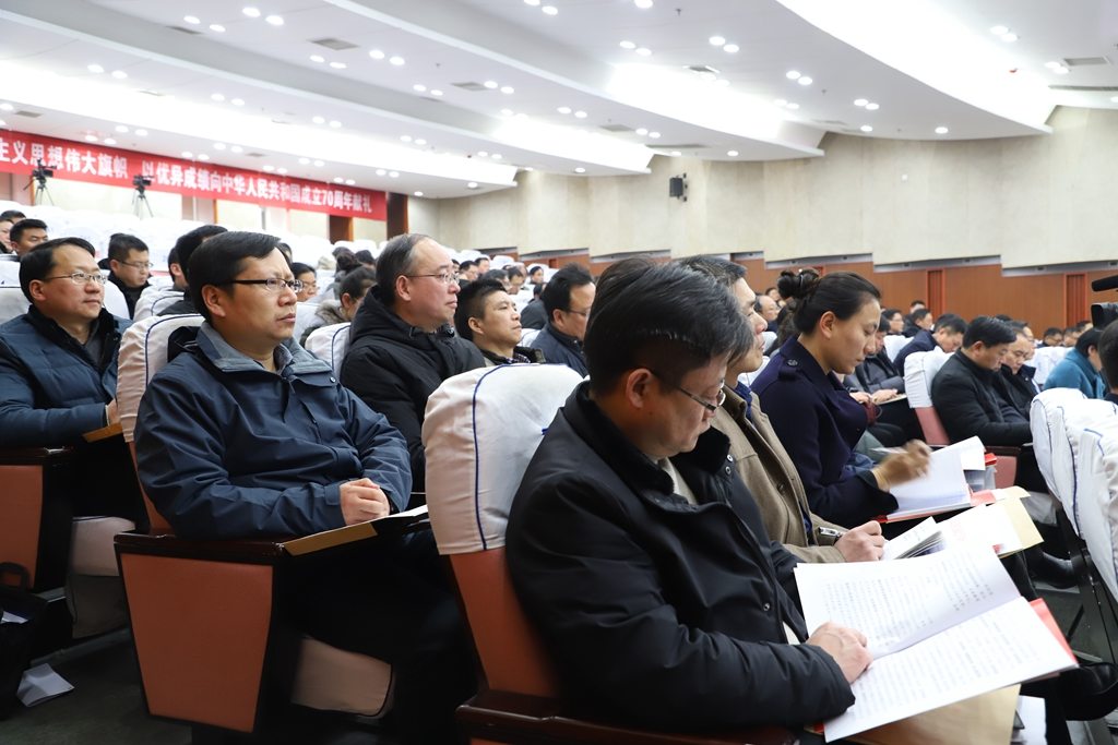 朱国兵要求,面对艰巨繁重的改革发展任务、复杂多变的外部环境挑战,全县各级党组织要以习近平新时代中国特色社会主义思想为指导,树立“四个意识”,坚定“四个自信”,坚决做到“两个维护”,以党的政治建设为统领,坚持稳中求进工作总基调,全面推进党的建设,取得全面从严治党更大战略性成果,巩固发展反腐败斗争压倒性胜利,一体推进不敢腐、不能腐、不想腐,健全完善监督体系,为高水平全面建成小康社会、推动全县“高质发展、后发先至”提供坚强政治保证,以优异成绩庆祝中华人民共和国成立70周年。