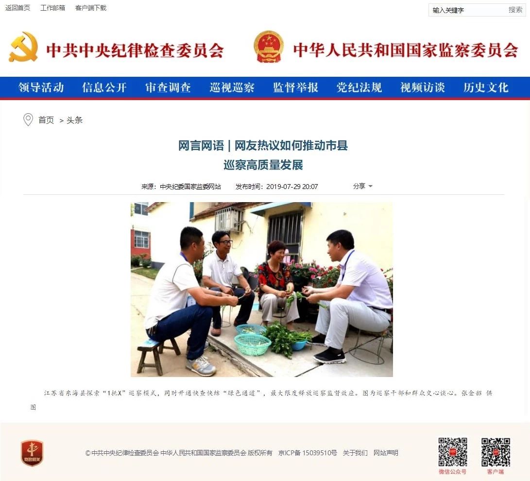 东海县这项工作被中央纪委国家监委网站关注